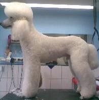 Alvin ( Harlekin-Großpudel ) kurzgeschnitten